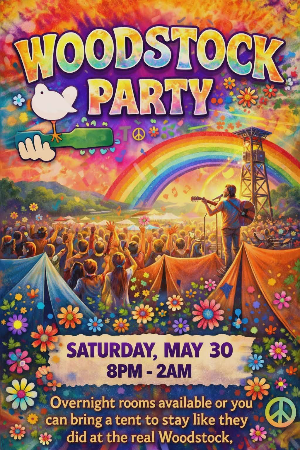 Taking it back in time with peace & love. Dress to impress and join Secret Encounters for a Woodstock party. This will be an indoor & outdoor event.